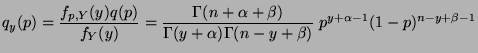 ![$\displaystyle q(p)=\frac{\Gamma(\alpha+\beta)}{\Gamma(\alpha)\Gamma(\beta)}p^{\alpha-1}(1-p)^{\beta-1}\,,